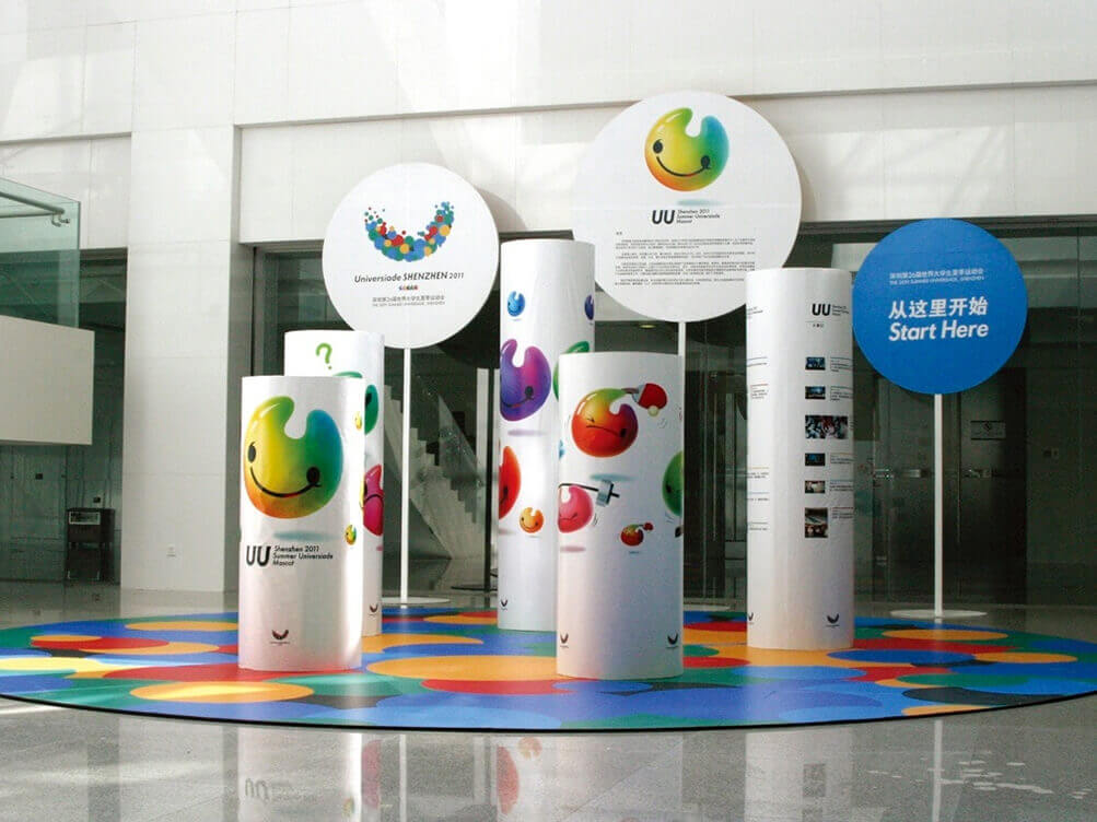 2009年8月12日,深圳市民中心广场举办了第26界世界大学生运动会2周年活动,以纪念这个将深圳隆重推向世界的特殊时刻,我们参与了整体活动的概念策划及视觉形象艺术指导。